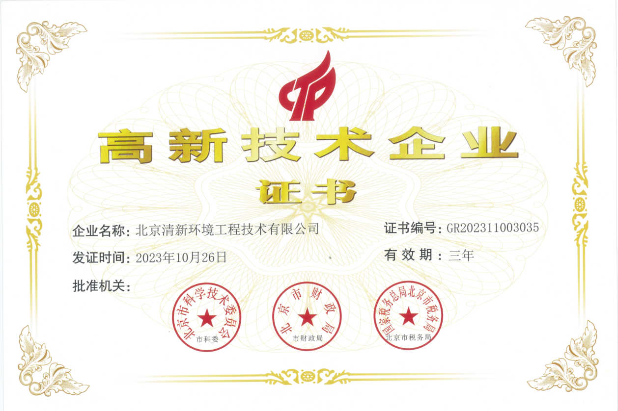 近日,全国高新技术企业认定管理工作领导小组办公室公布了北京市2023年第二批高新技术企业备案名单,清新环境旗下北京清新环境工程技术有限公司(以下简称“清新工程”)荣列其中,标志着清新工程正式跻身于“国家高新技术企业”行列。